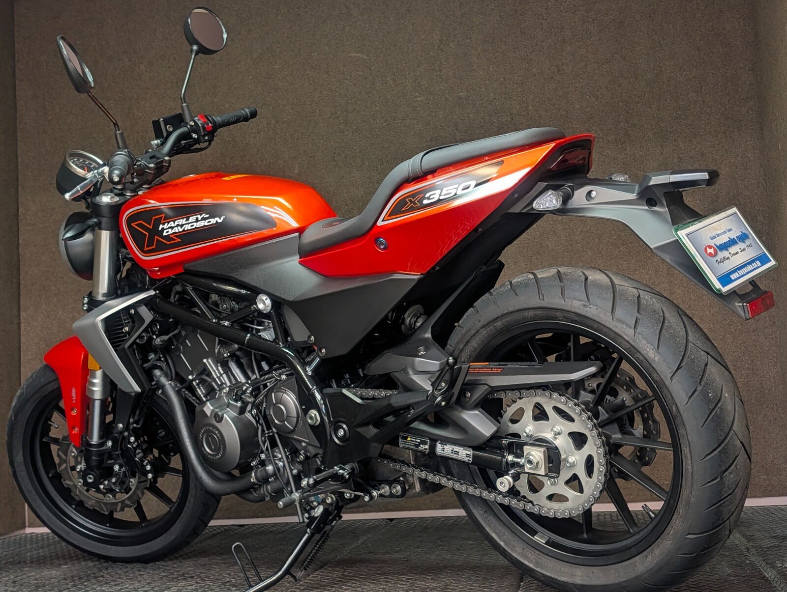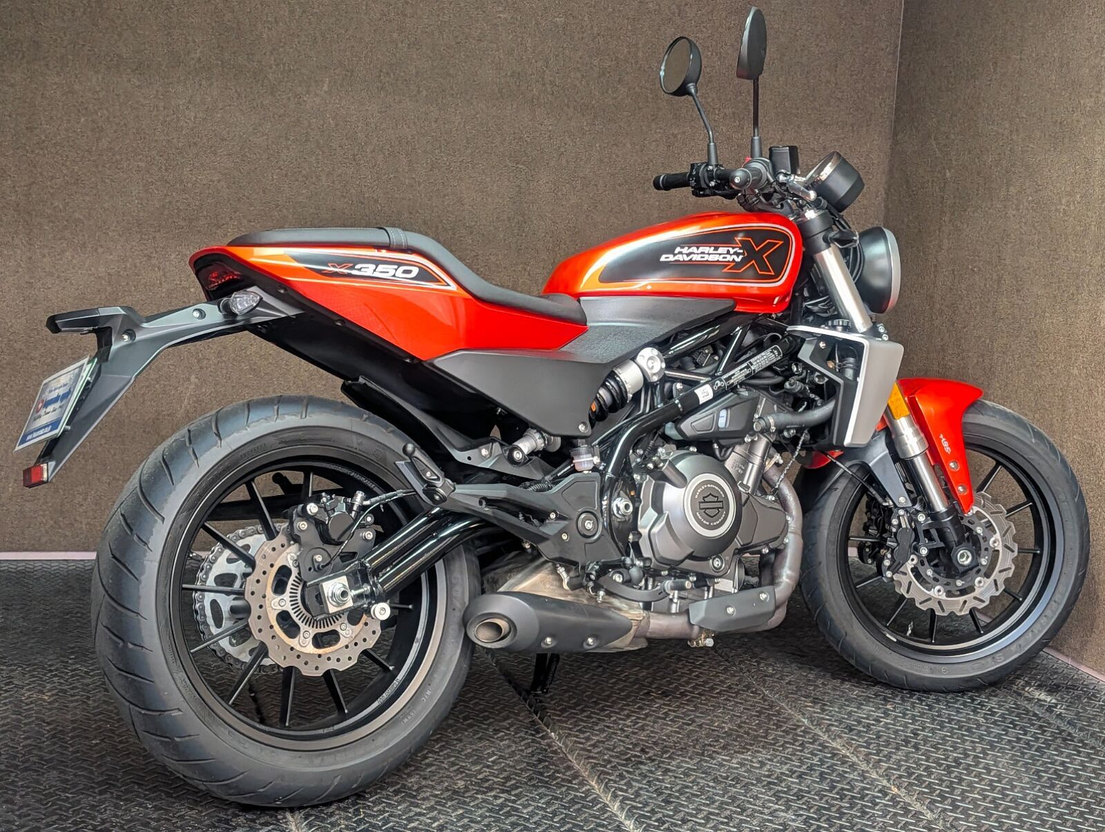 並列2気筒360度クランクのエンジンは、低回転域ではツインらしい鼓動感と力強さがありつつ、回転を上げると軽快に変化するフィーリングを楽しめるのが特徴。低音を基調とした厚みのあるマフラーサウンドも、走りの存在感を高めています。スチール製フレームは十分な剛性を備え、マフラーやシート、フェンダーレスなど多彩なカスタムを受け止めます。中古車ゆえに初期費用を抑えられるため、まずはノーマルで走りを楽しみながら少しずつ自分好みに育てていくのはいかがでしょう。X350は「乗ることでオーナーの色に染まり、完成していく」というハーレーらしい思想を「体感」でき、初めてハーレーの世界へ踏み出す入口としても魅力ある頼もしい一台です。