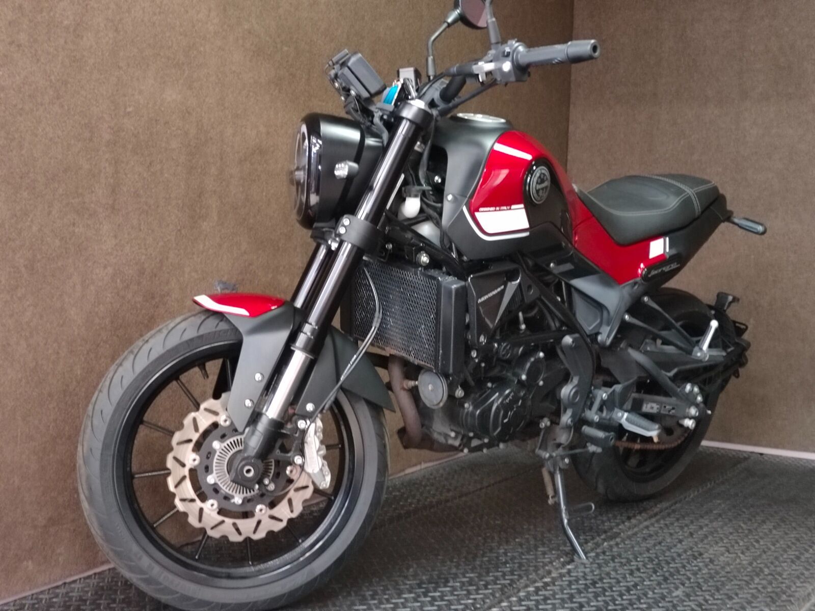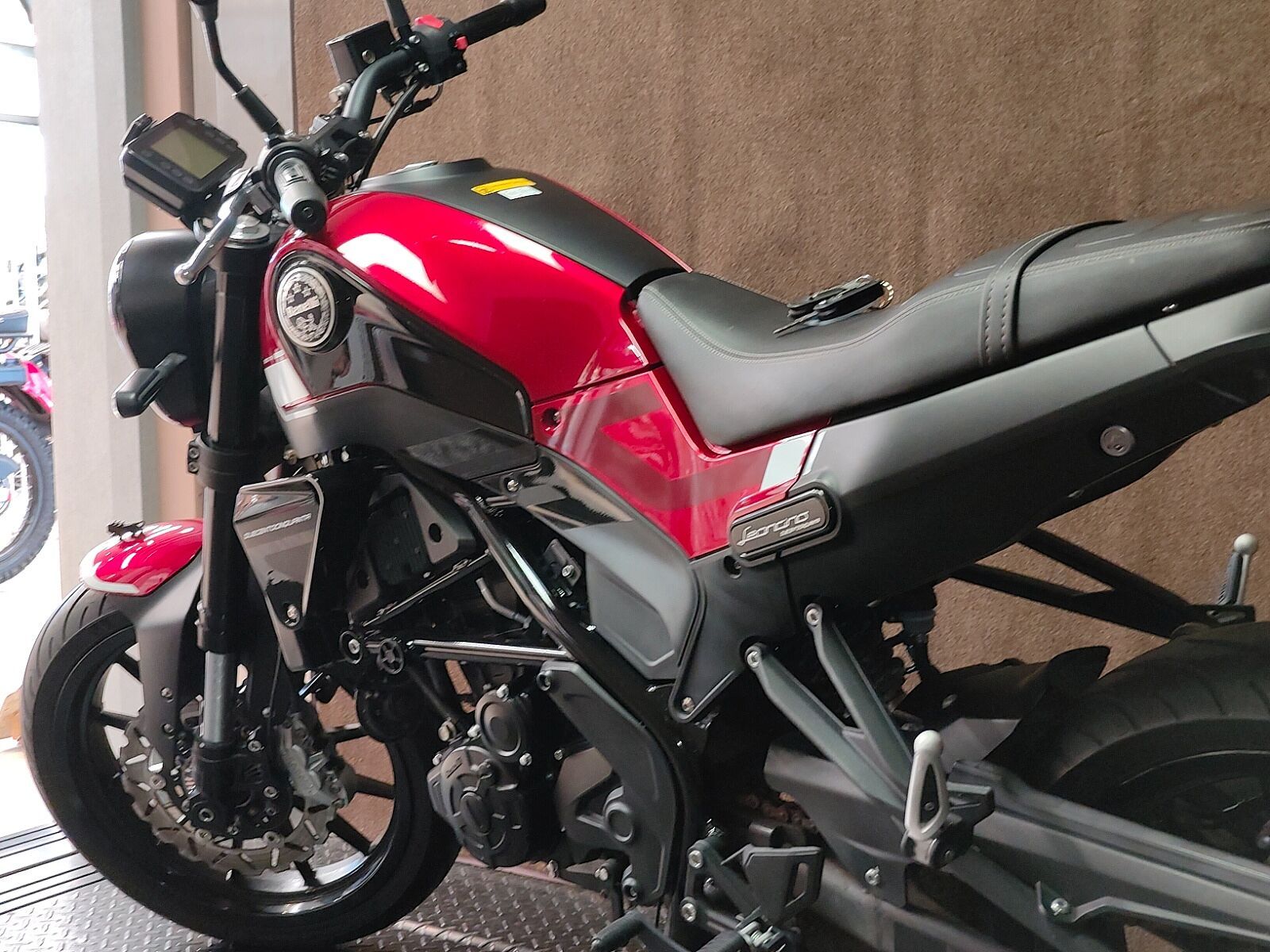 レオンチーノ250は水冷単気筒エンジンを搭載。中低速のトルク感と鼓動を重視し、市街地やワインディングで扱いやすい特性に仕上げられています。スチールトレリス(トラス)フレームとアルミ製スイングアームの組み合わせにより,剛性感としなやかさを両立。無垢感のある金属パーツからは剛性感が伝わって来て,フレームとエンジンなどレイヤー感を多用した立体的な造形、フロントフェンダー上のライオン像などなど、他には見られない所有感をくすぐるベネリらしいデザインになっています。シート高800mm,数値以上にコンパクトさを感じさせるボディには,派手さはないけれど回せばしっかり加速するエンジンを搭載し,疲れにくく街乗りでは特に楽しい鼓動感と加速力が味わえます。カフェ巡りや夜の街を流すようなシーンにもよく似合うおしゃれなデザインで、乗れば穏やかな乗り心地とともにバイクと過ごす時間そのものを楽しませてくれる1台ですよ!!