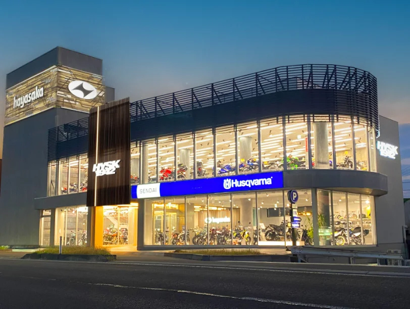 元々は仙台西公園近くにありますハヤサカサイクルモーターステージ大手町に入っておりましたハスクバーナ仙台が、今回のリニューアルOPENに伴って泉バイパス店へ移転しております。