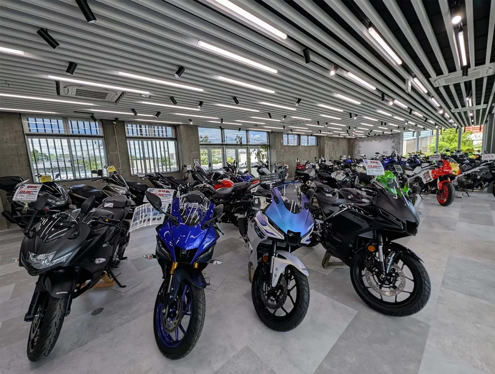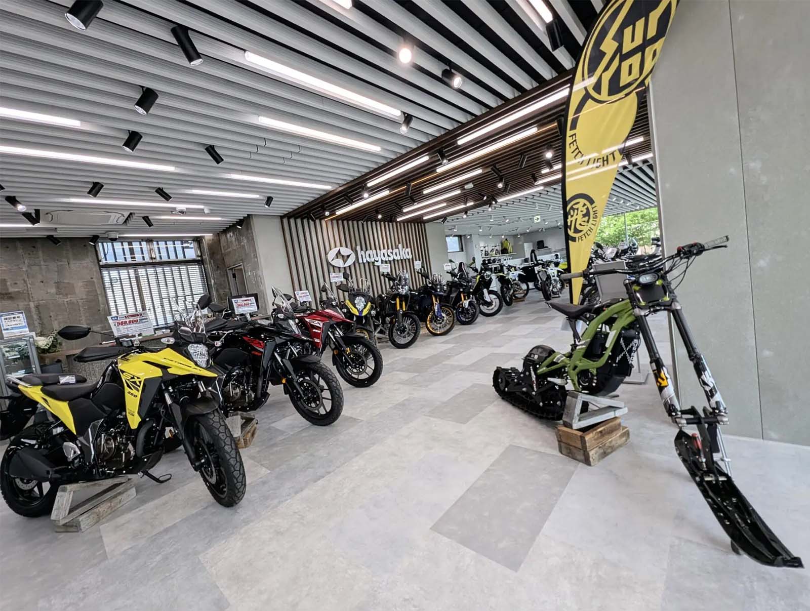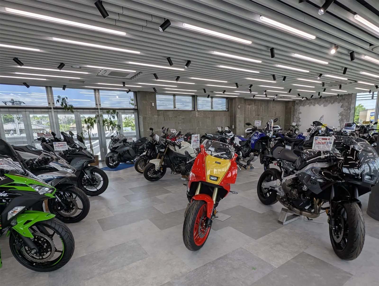 国内4メーカーは勿論、ベネリ、サーロン、輸入モデル、レンタルバイクまで正規取扱いが可能。常時200台以上、東北最大級のラインナップの中からお客様に似合ったバイクをご提案致します。メカニックはメーカー最高位資格が多数在籍しワンランク上のアフターサービスやカスタマイズも充実。ツーリング・イベント等のバイクライフまでトータルサポートいたします。