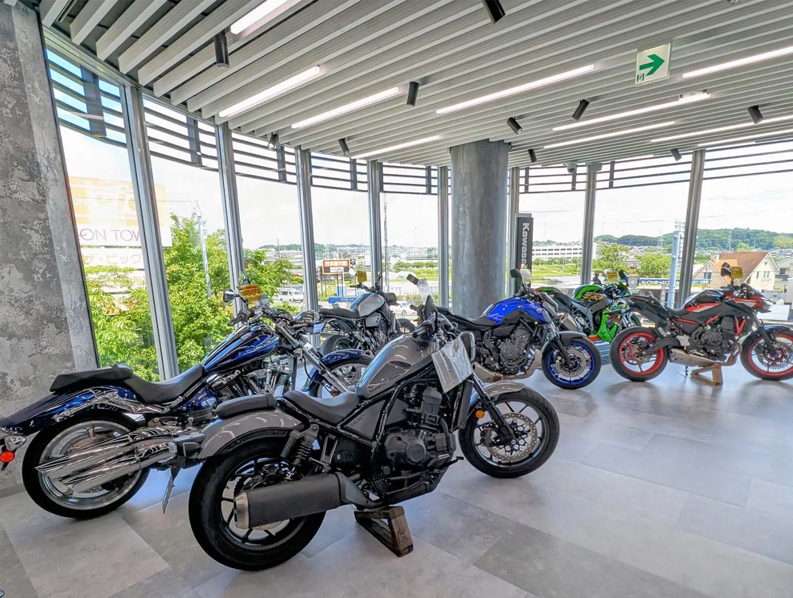 外からの光が店内に入り込み、バイクの輝きがより強調されるようなお店作りとなっています。