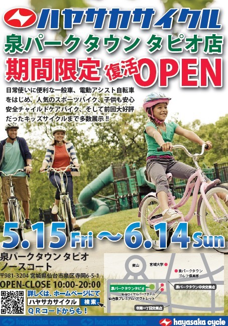 ハヤサカサイクルタピオ店が期間限定の復活オープンしております!!