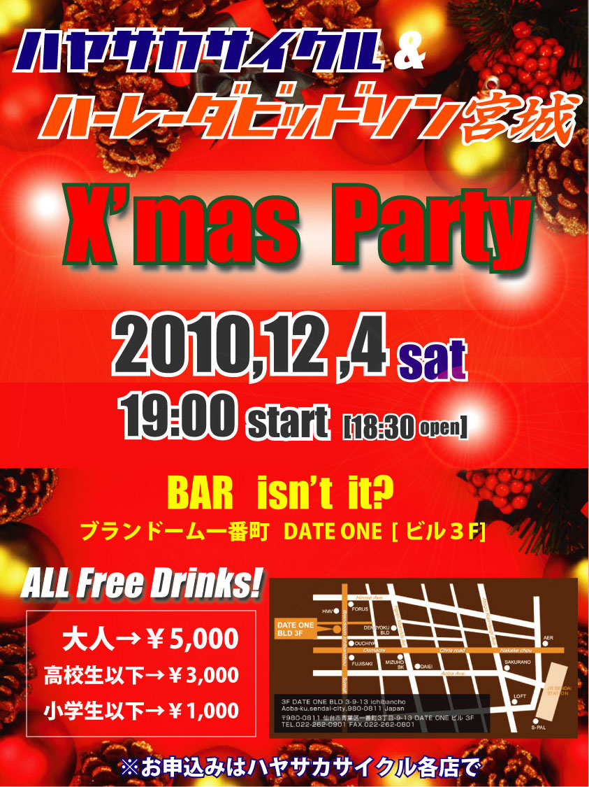 ハヤサカサイクル&ハーレー宮城主催恒例 クリスマスパーティー開催!!