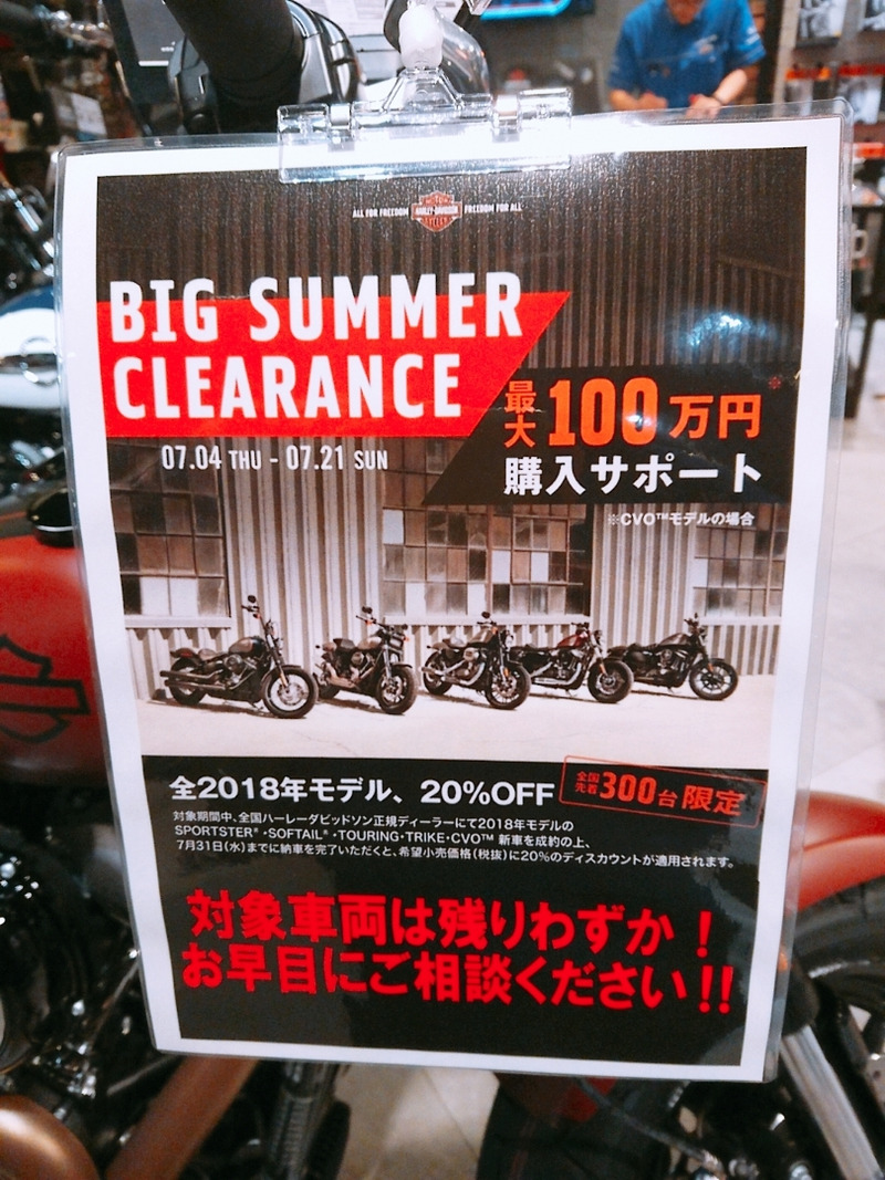 ハーレーダビッドソン2018年全モデルが20%OFF