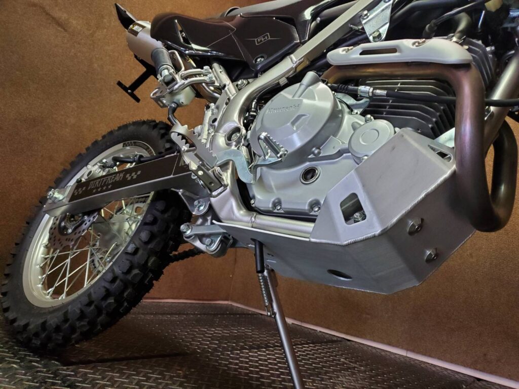 定番のアンダーガードを装着。今回はアルミ製で無骨なデザイン、頑丈なものを選びました。そもそも純正ではオプション設定となっていて装着されていないので、こればっかりはコストダウン感が否めません。オフロードバイクであれば必需品だと思います。アルミ素材の溶接面もワイルドでルックス的にも格好良いですね!