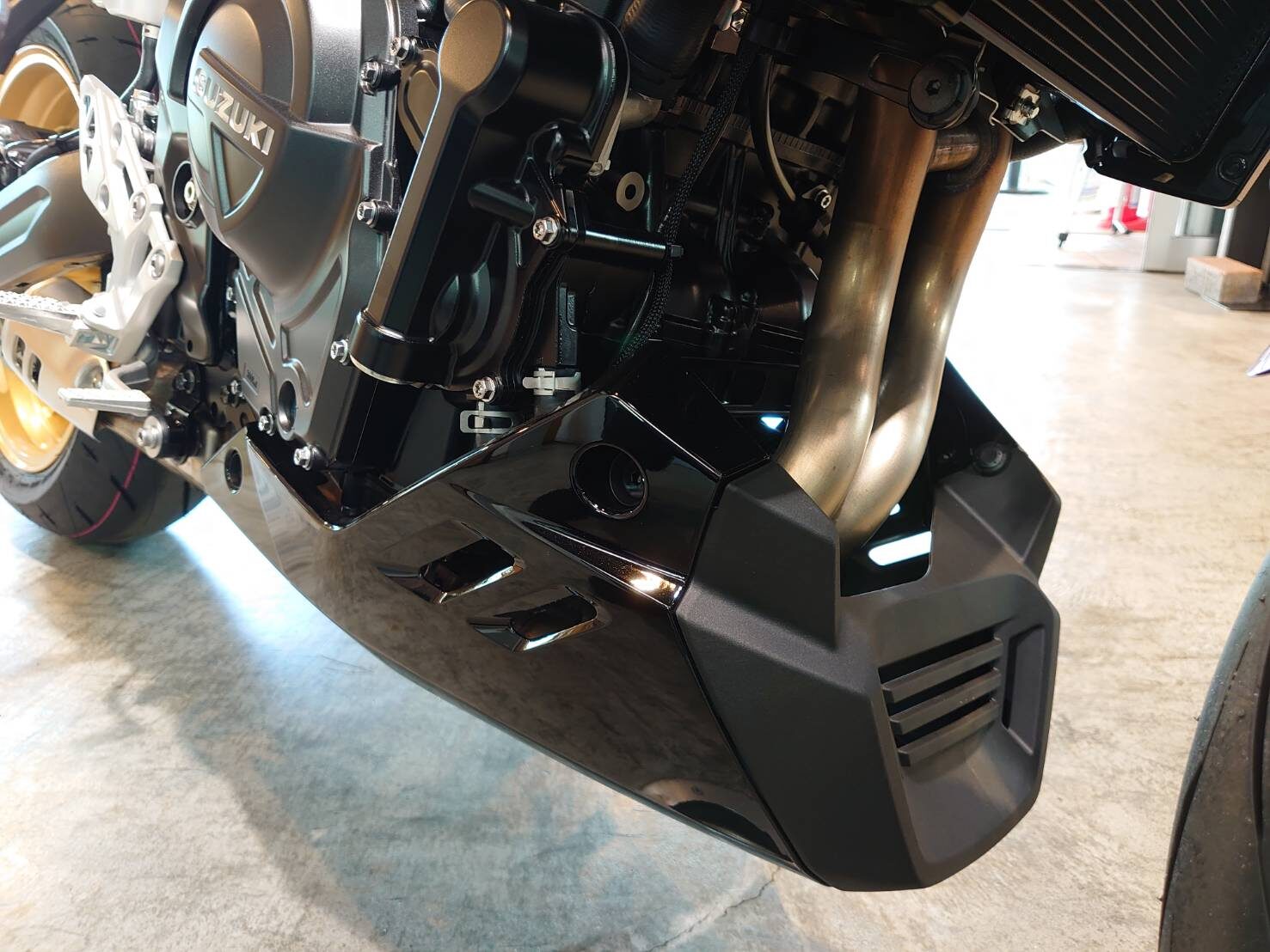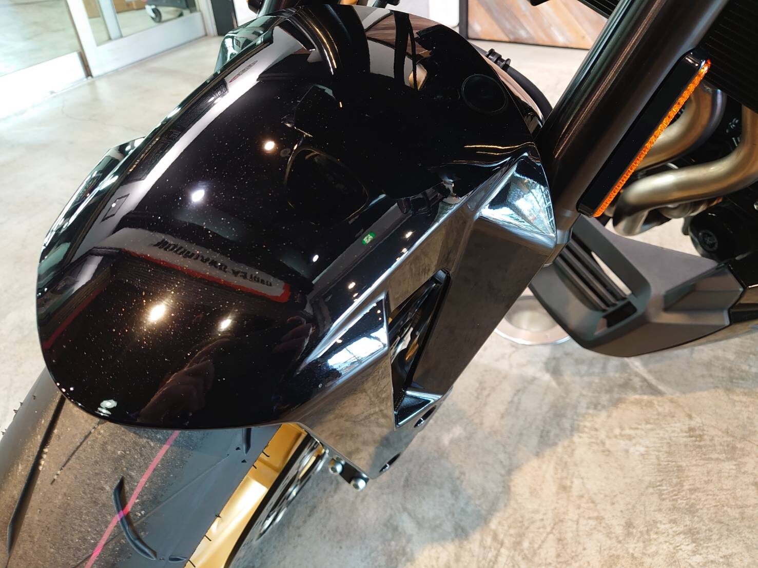 アンダーカウル、ラジエターカウル、フロントフェンダーは艶アリのブラック。