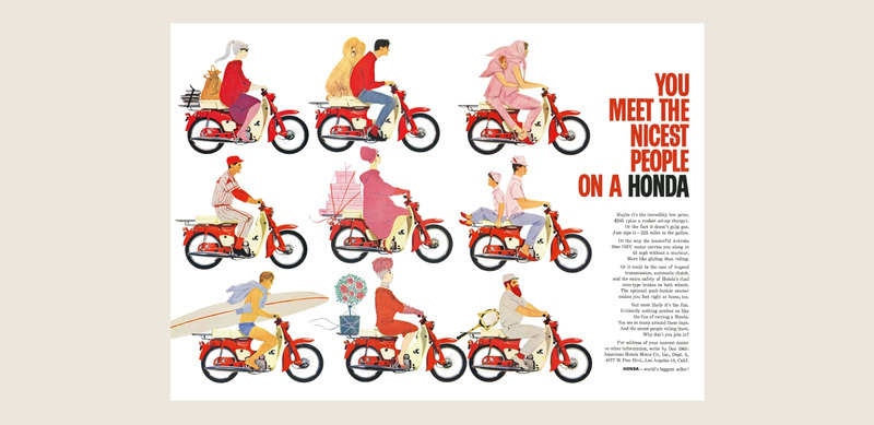 このカラーは、当時、アメリカ向け輸出モデル「スーパーカブ CA100」を思わせるスタイルに、