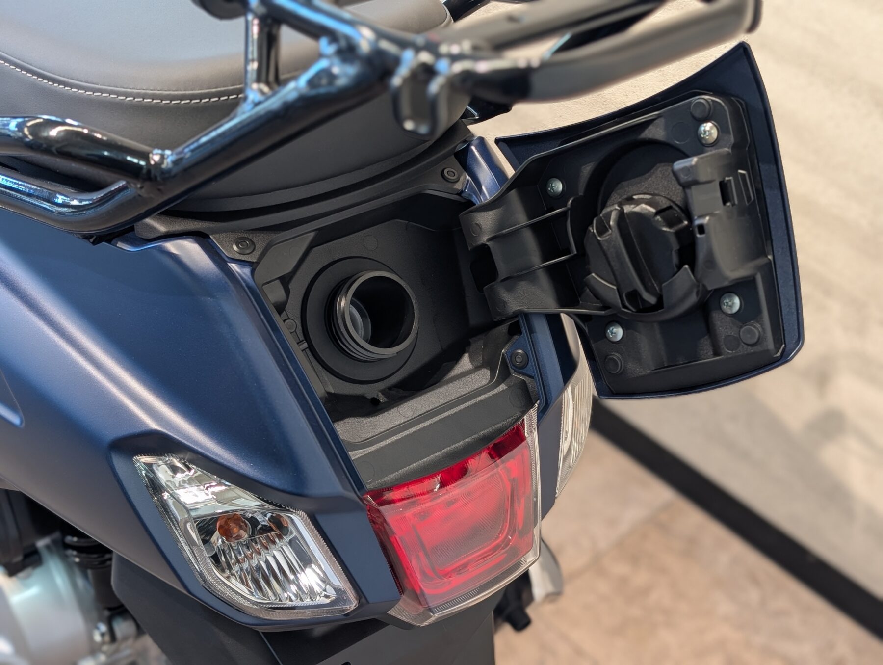 - 給油口にフタ(リッド)が付いた!前モデル(DP12H)は給油口のキャップがむき出しでしたが、最新型はキー操作で開くフューエルリッドを採用。見た目もスマートになり、セルフ給油もよりスムーズになりました。