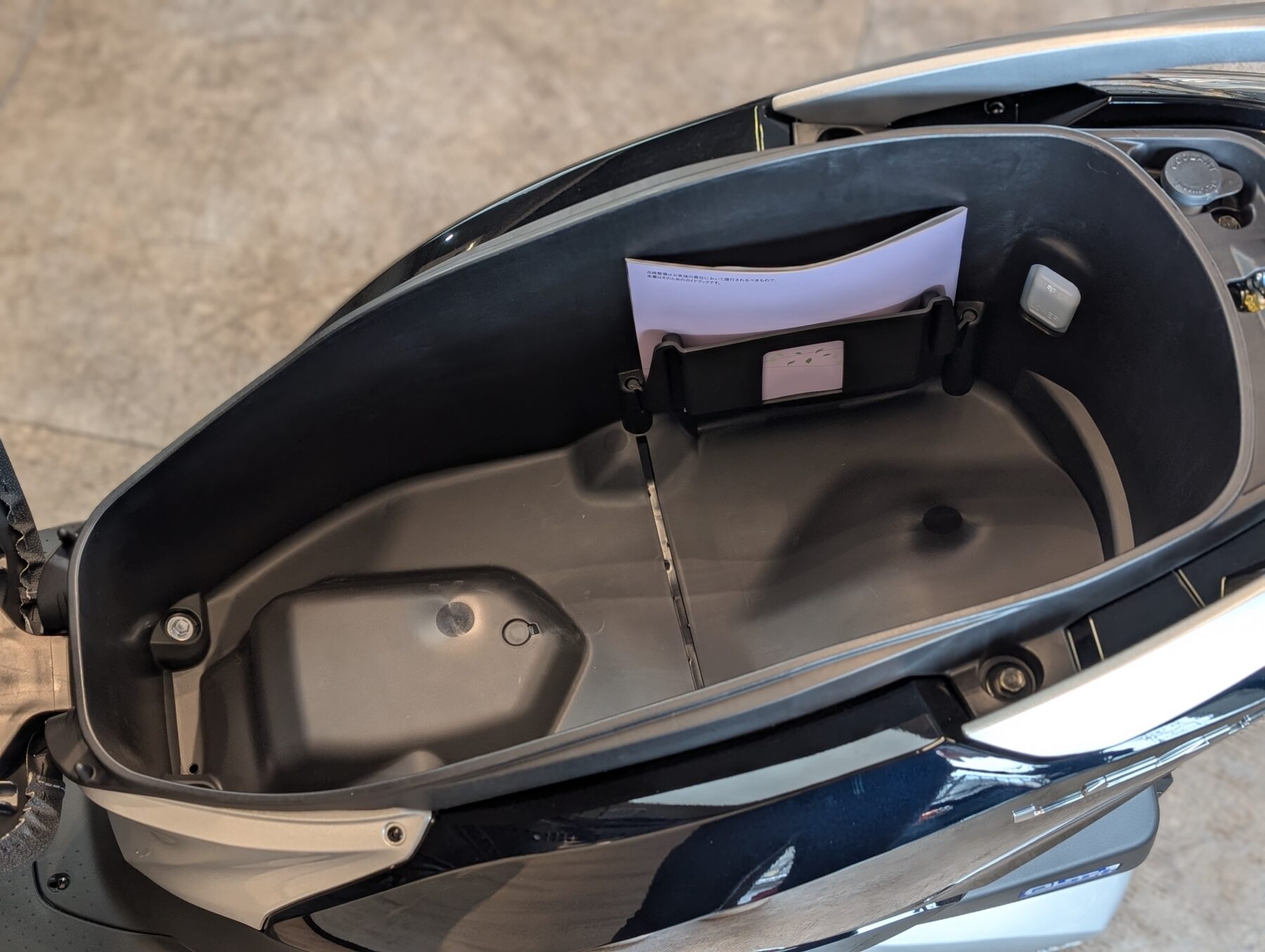 シート下には37Lの収納スペースがあり、ヘルメットや荷物を収納可能