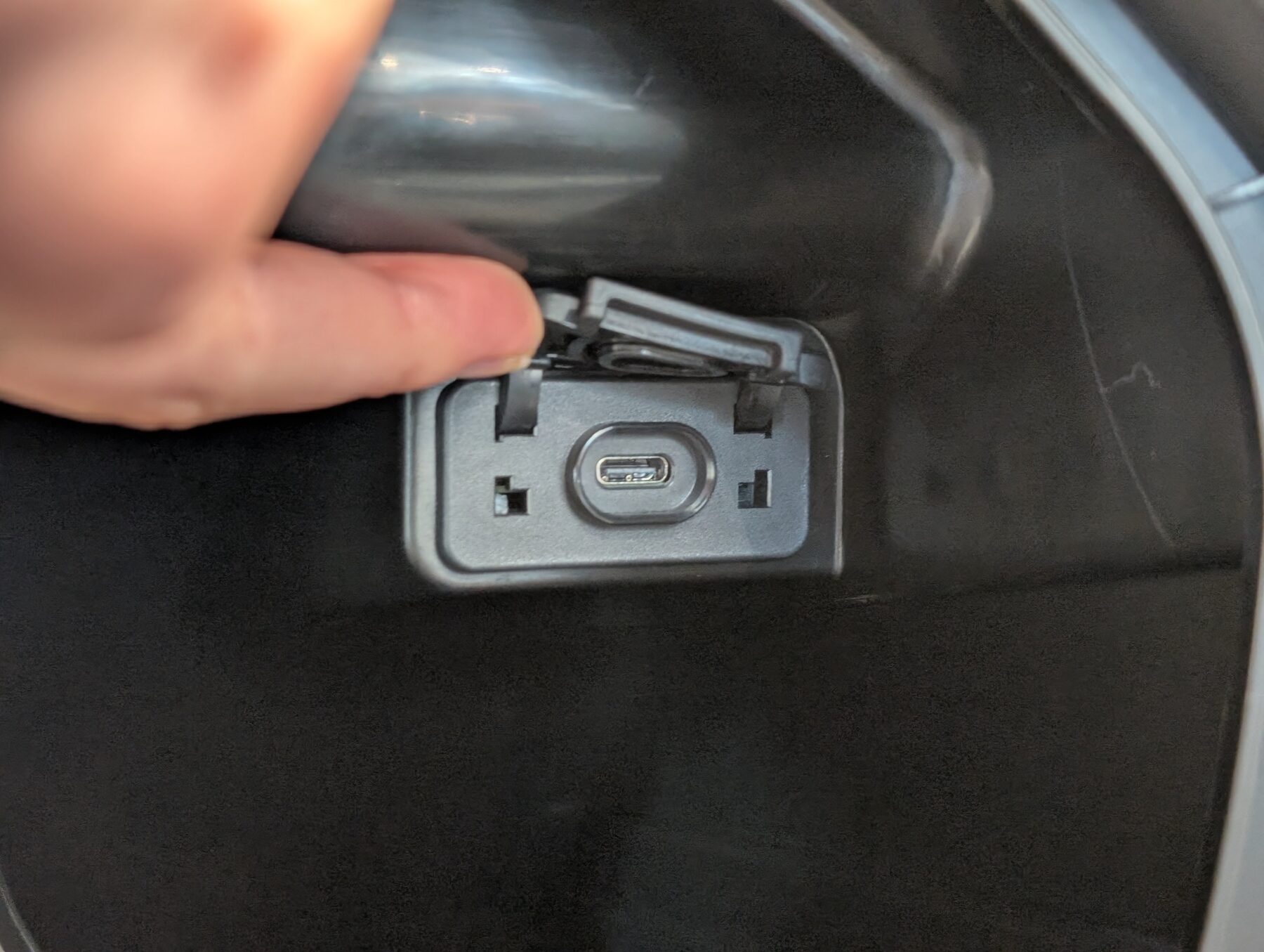 フロントのポケットにはUSB Type-Cソケットがあり、走行中にスマートフォンやモバイルバッテリーの充電が可能