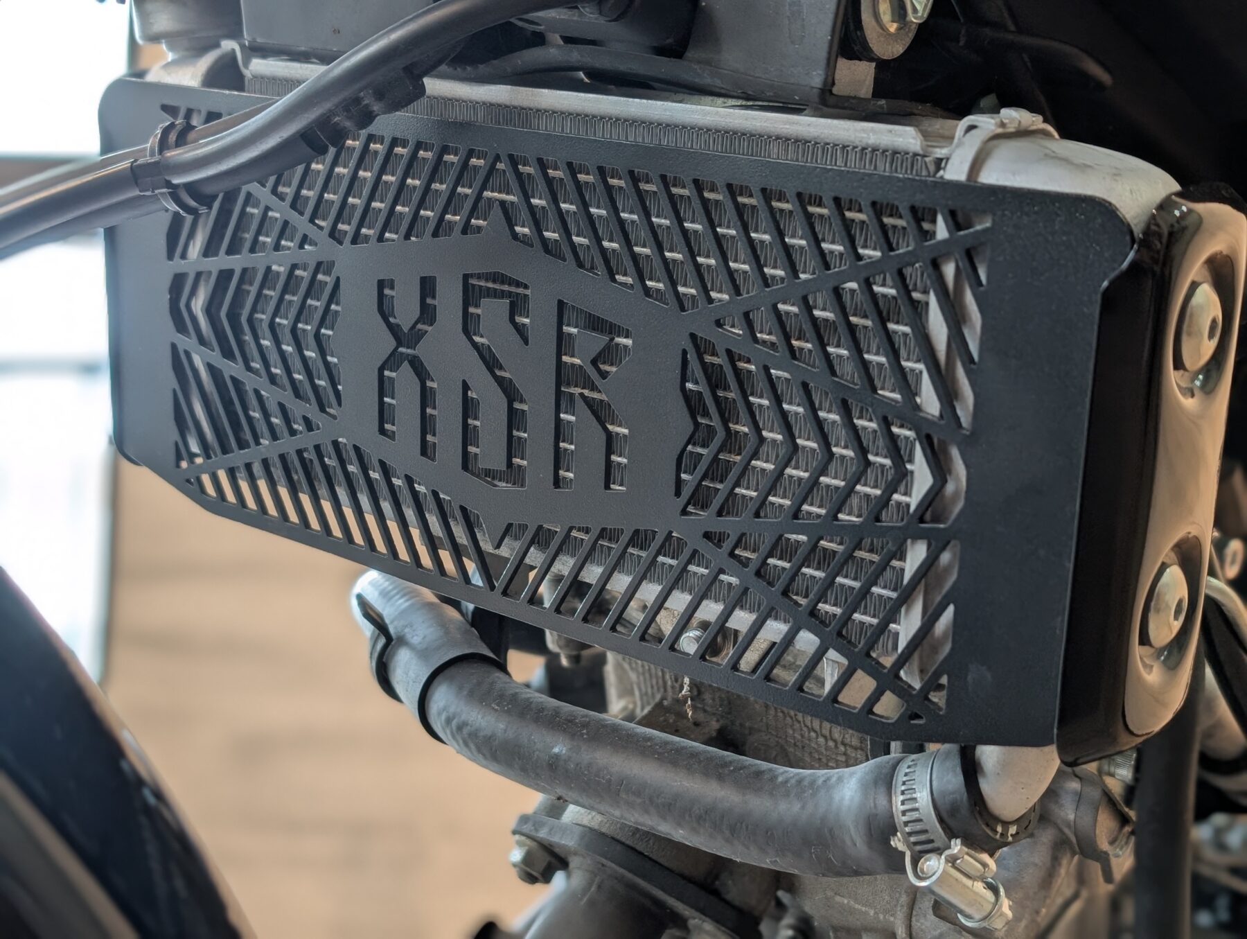 →走行中の飛び石や虫からラジエーター(冷却水)を守る保護パーツ
