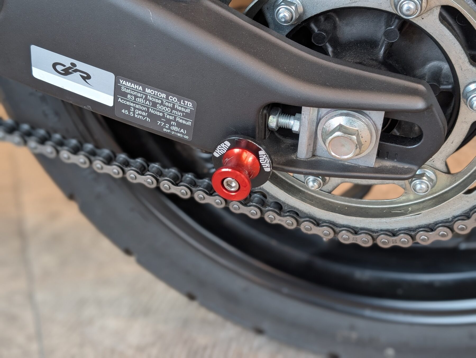 →メンテナンススタンドを掛けるためのフック
