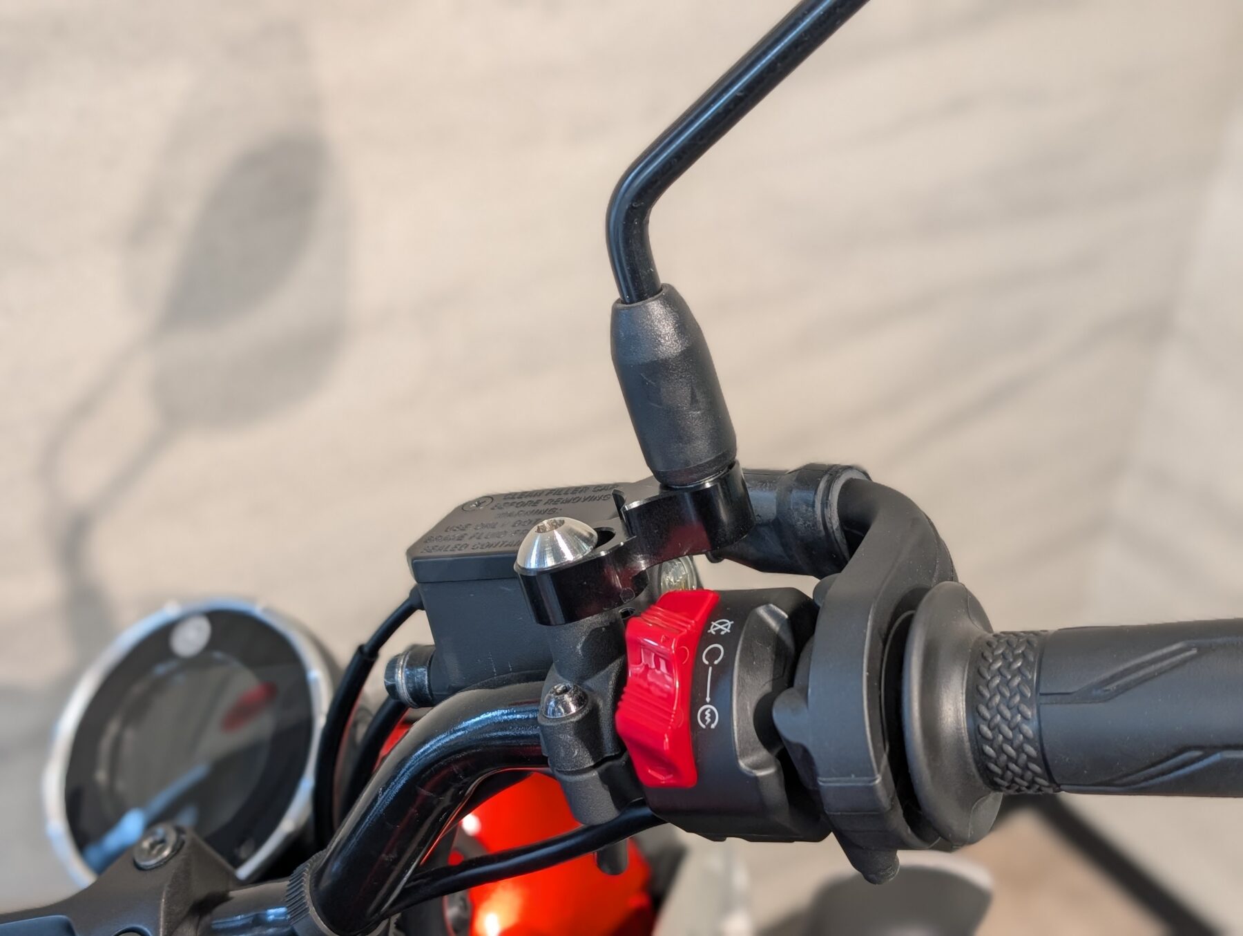 →ミラーを少し外側にオフセットすることでライダーの腕や肩に視界が被らず後方確認しやすくなる便利パーツ