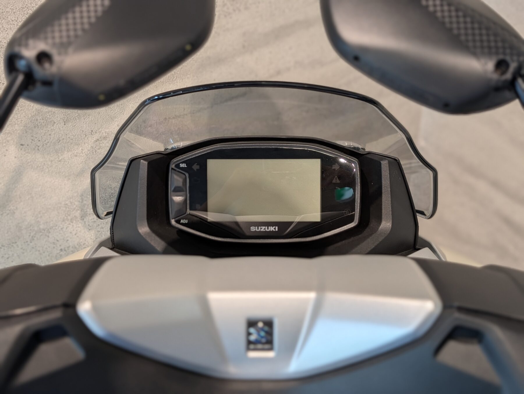 メーターは視認性の高いデジタル表示で時計や平均燃費、オイル交換の目安も確認可能