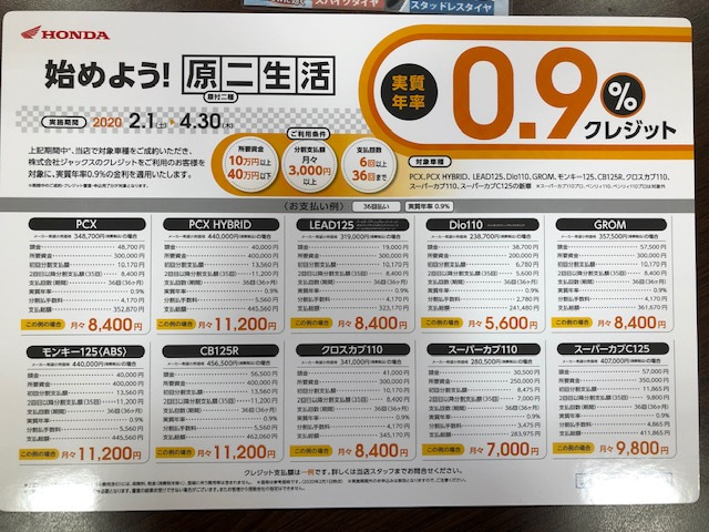 新車クロスカブ110は低金利キャンペーン対象車種ですので