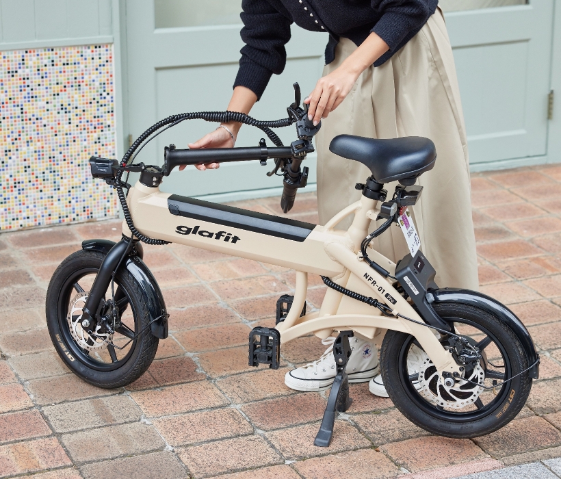 実際に私も試乗してみましたが、印象としては「コンパクトなのにパワーがある!」「高い安定性!」「コンパクトボディで手軽な取り回しができる」でした。走ってみるとモーター駆動なので力強く、ぐんぐん進んでいきますが、キックボード型のように極小タイヤではないので路面の凹凸への恐怖感もなく走れました!電動アシスト自転車と違い「ペダルをこがなくていい!」ので本当にラクラク!航続可能距離は33km~46kmと街乗りでは十分!車両がコンパクトなので、車に積んで離れた場所へも持っていけちゃいますね!