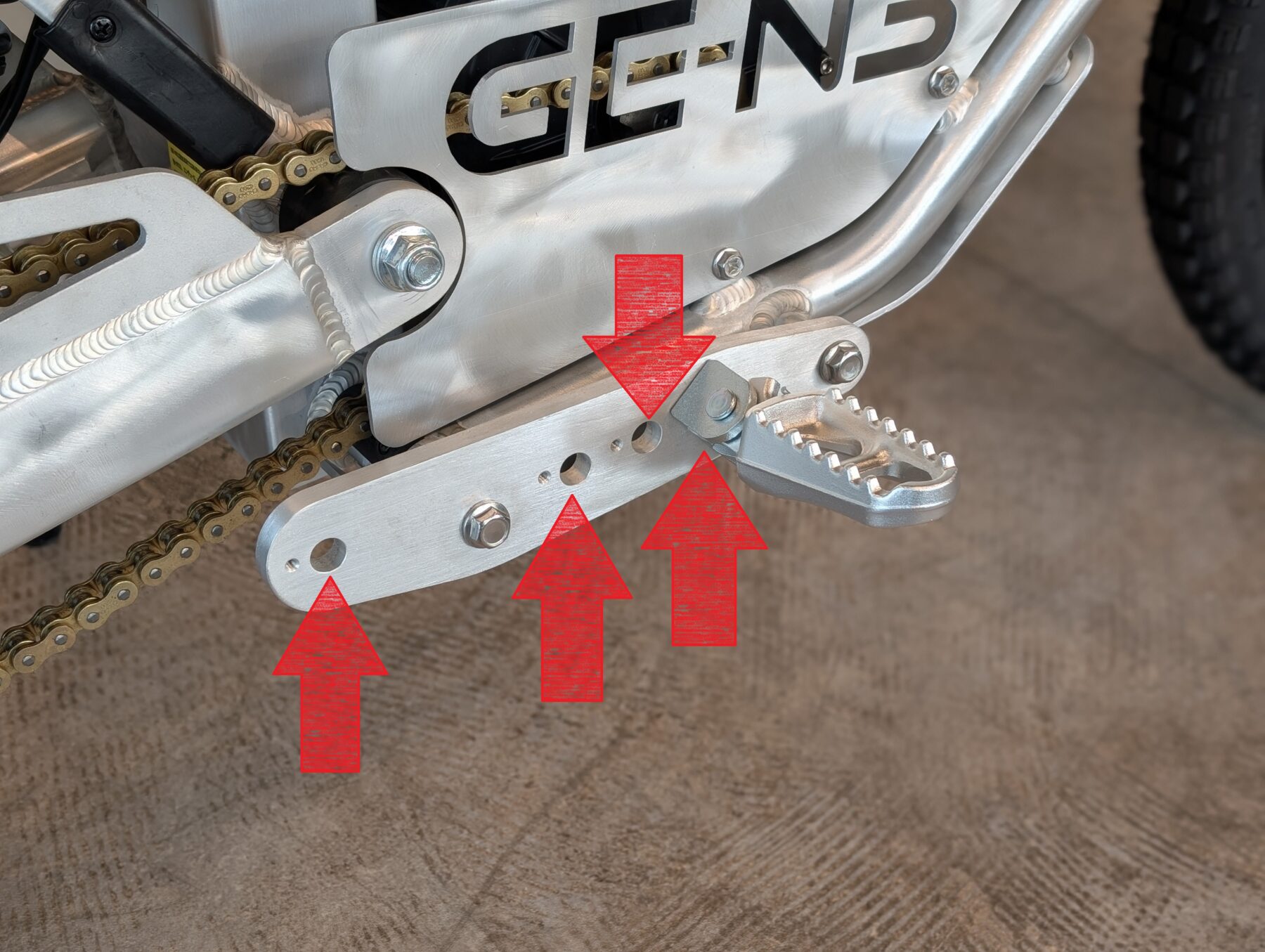 乗り心地重視の1~2番ポジション、オフロードバイクに近い3番ポジション、障害物のある道を走行するトライアルバイク寄りの4番ポジションとフットペグの位置を変えられ、ライディングポジションを自分好みにアレンジ可能