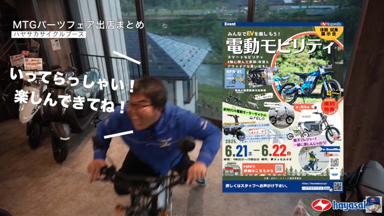 今回のMTG PARTS FAIR 2025では、最近話題の「電気」を使ったモビリティを存分に展示する予定となっております。