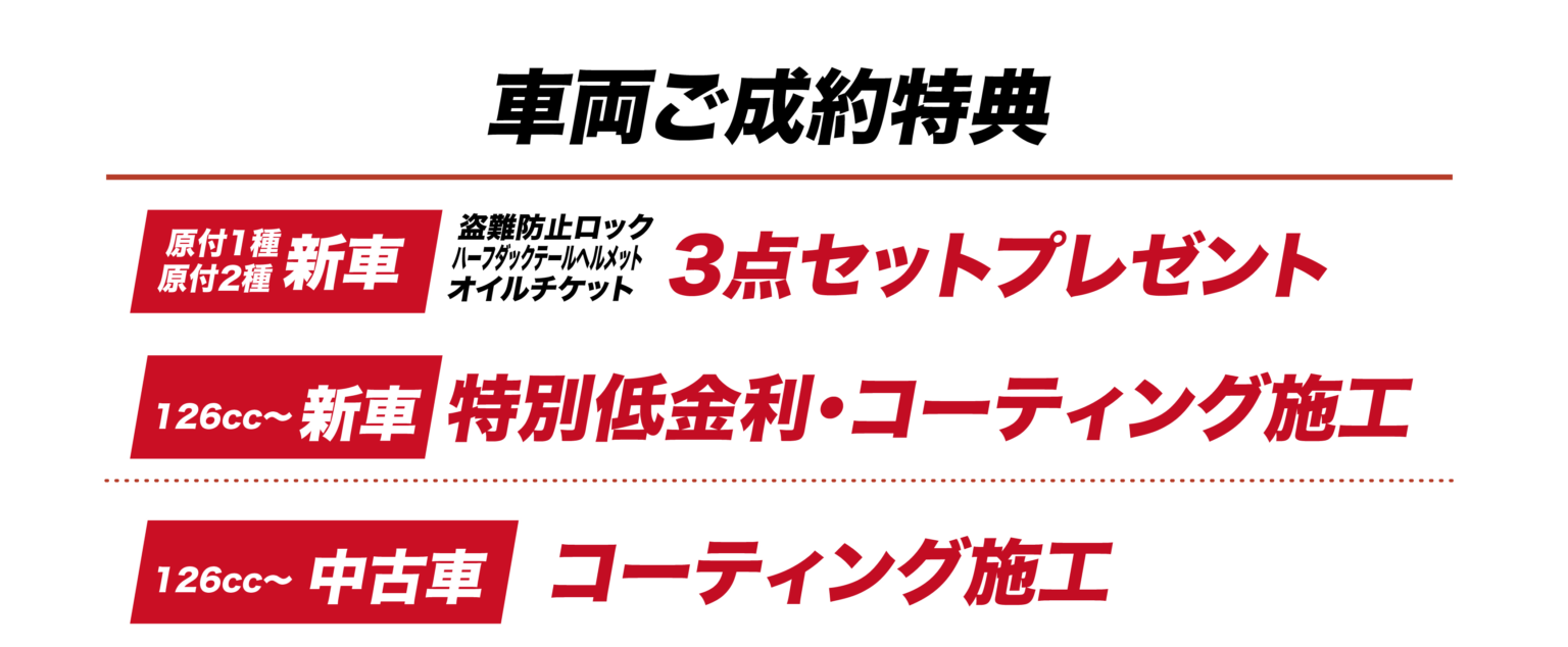 バイクの表示価格は現金特価となります。お得な分割払いもご用意しておりますので、お気軽にご相談ください。