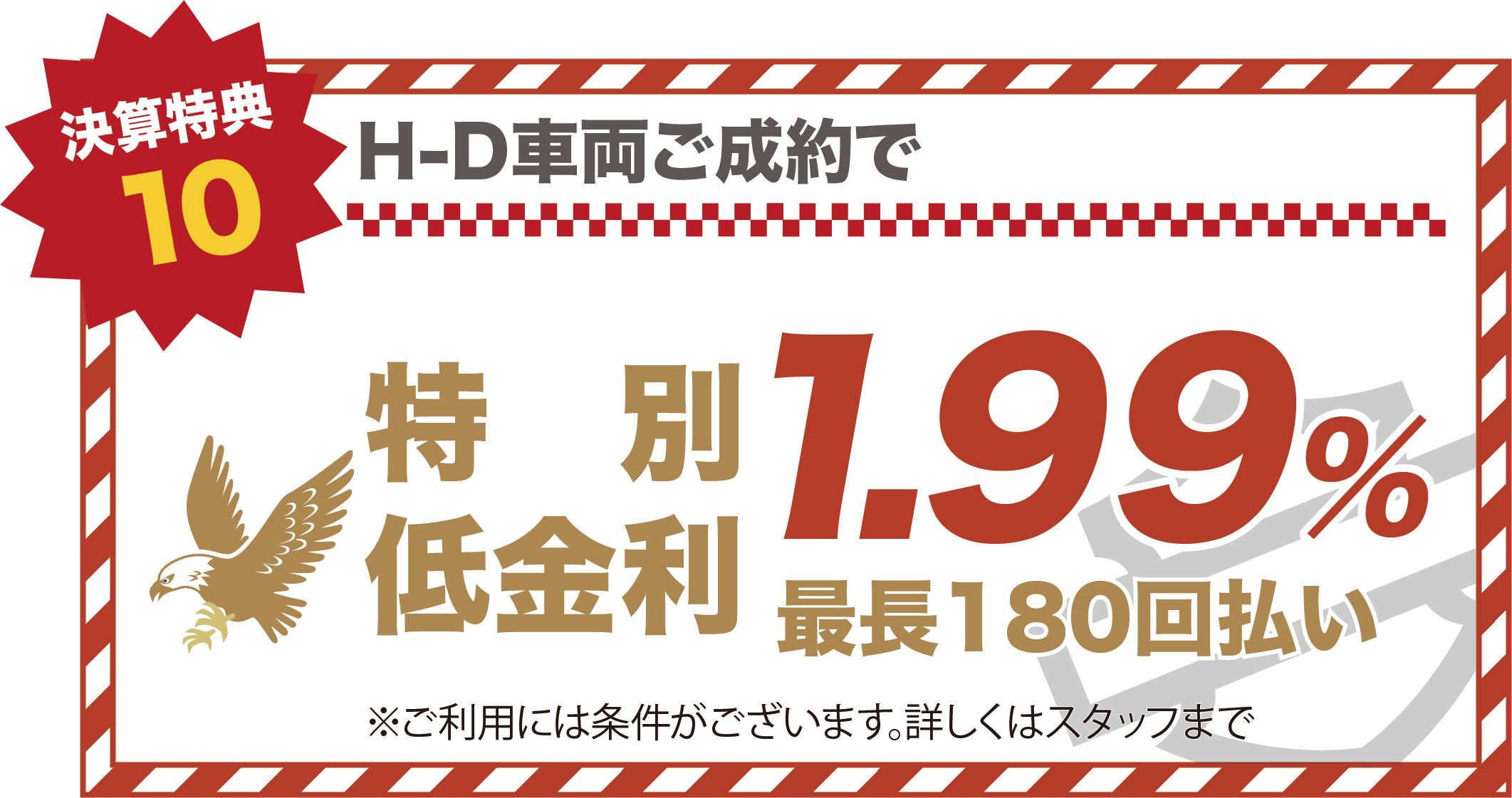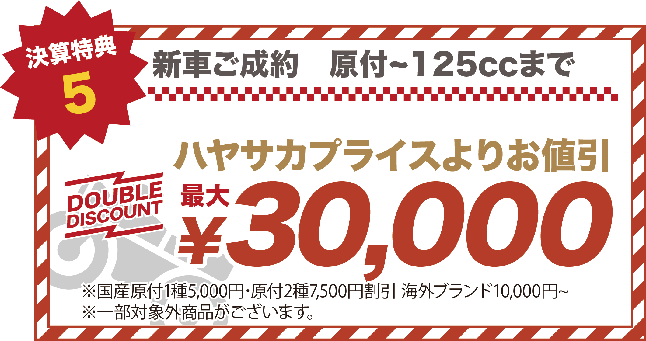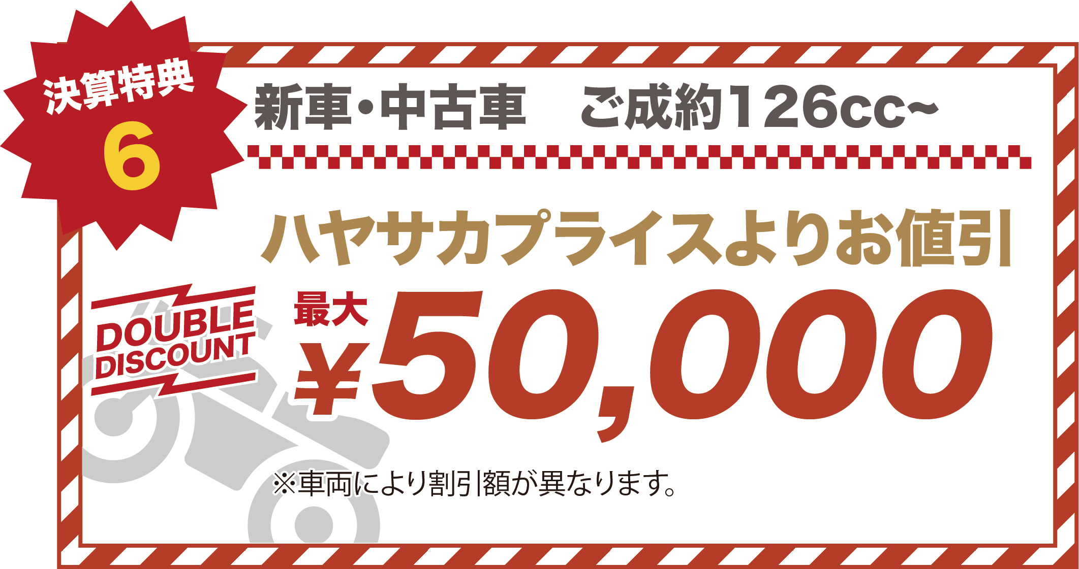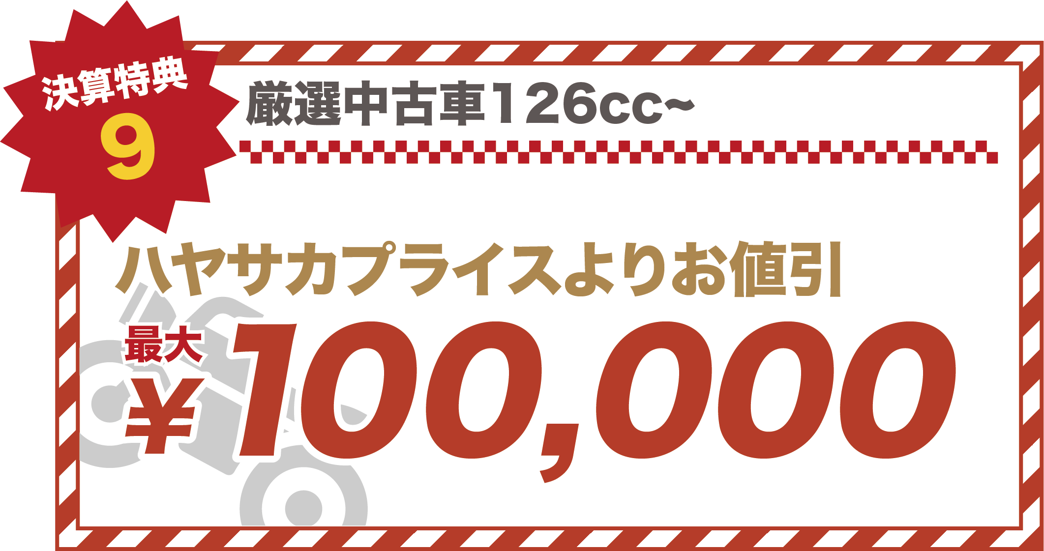 バイクの表示価格は現金特価となります。お得な分割払いもご用意しておりますので、お気軽にご相談ください。