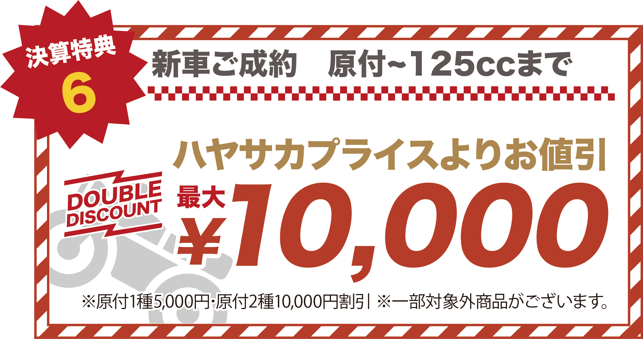 バイクの表示価格は現金特価となります。お得な分割払いもご用意しておりますので、お気軽にご相談ください。