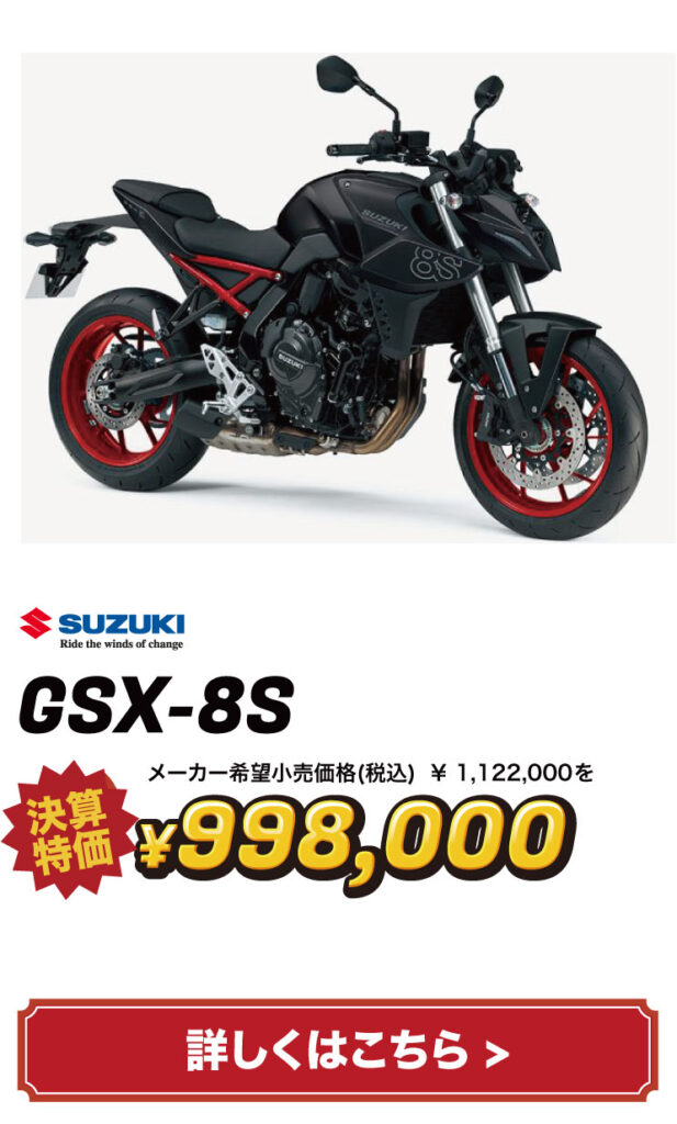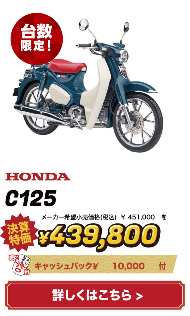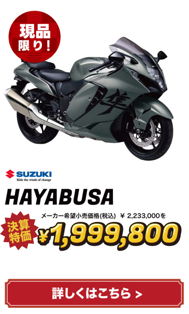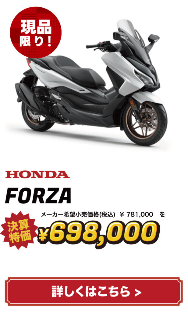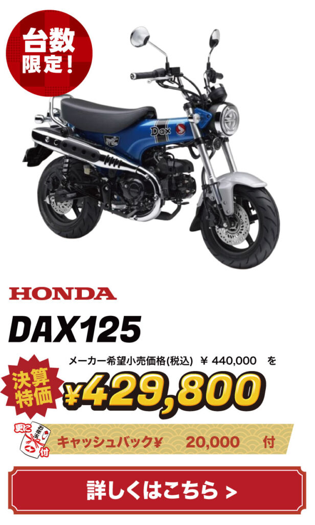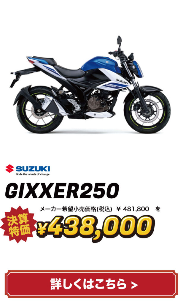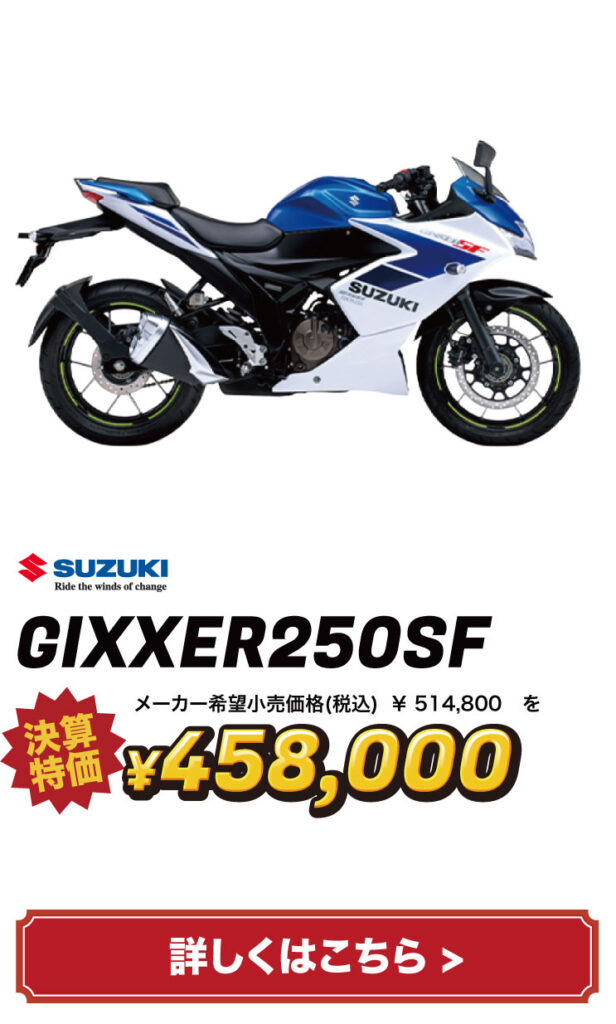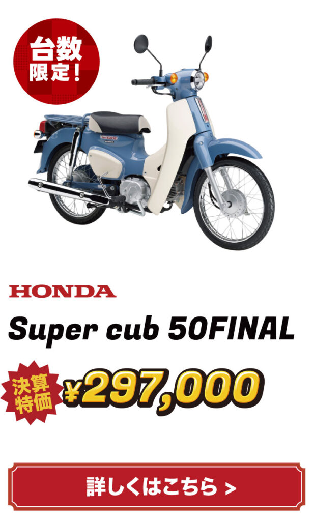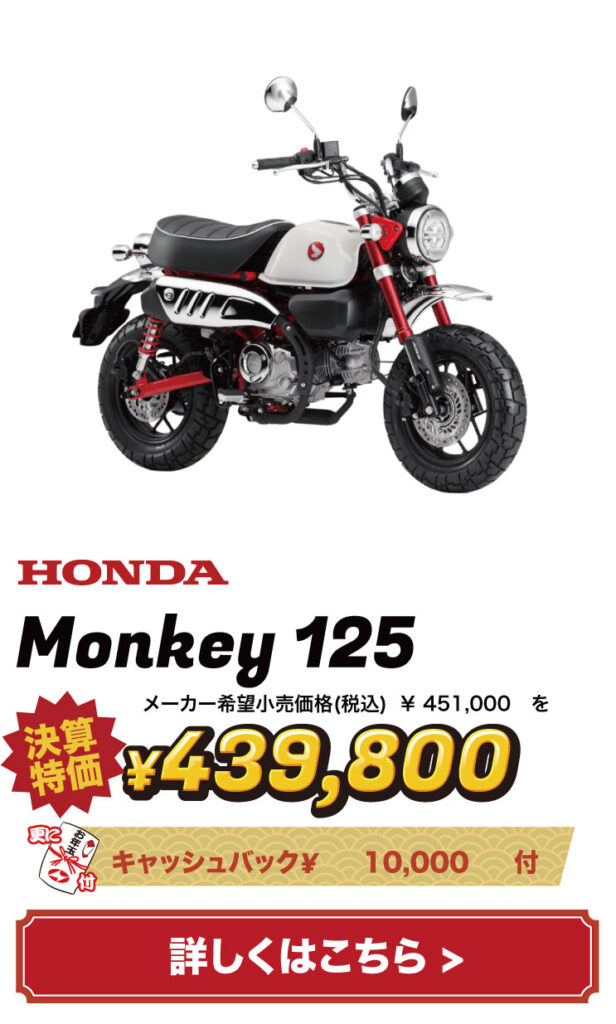 バイクの表示価格は現金特価となります。お得な分割払いもご用意しておりますので、お気軽にご相談ください。
