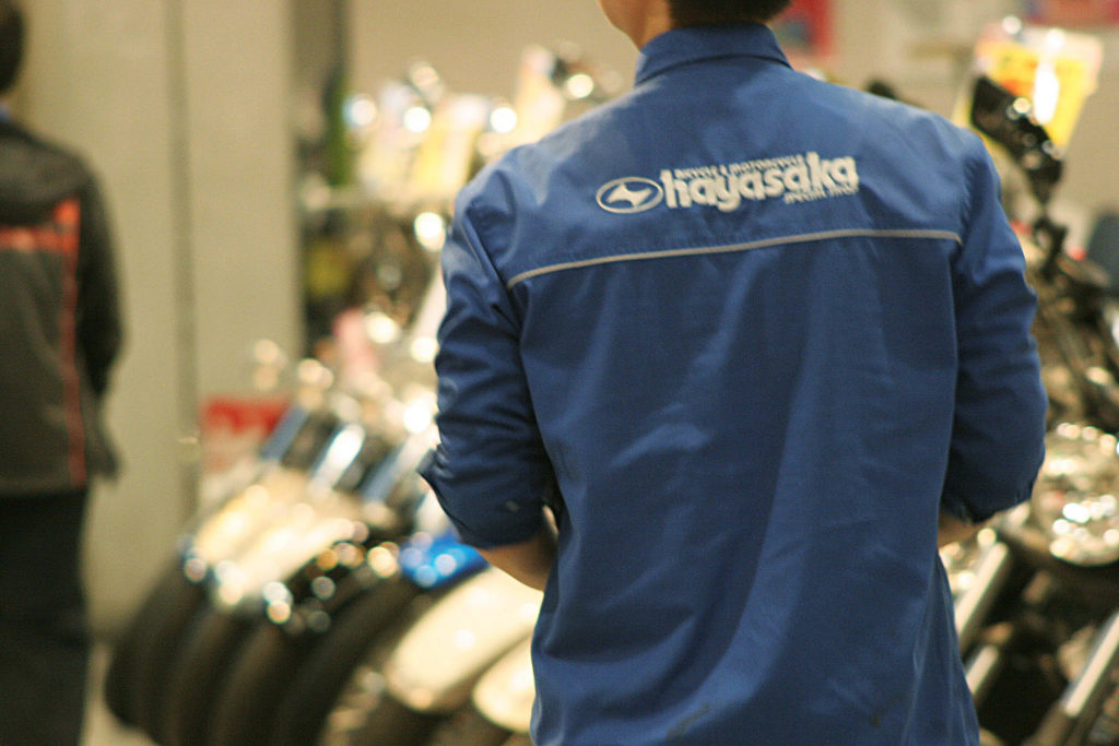 ハヤサカサイクルにはバイク好きが集まります。