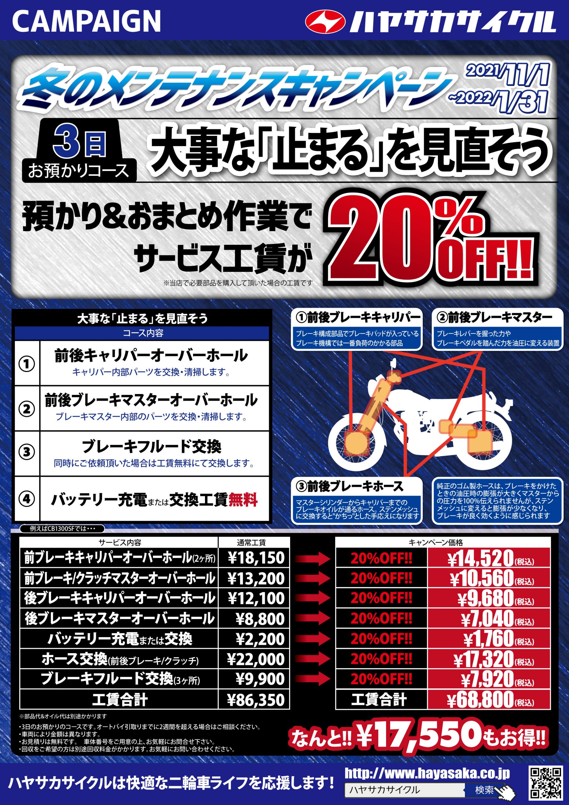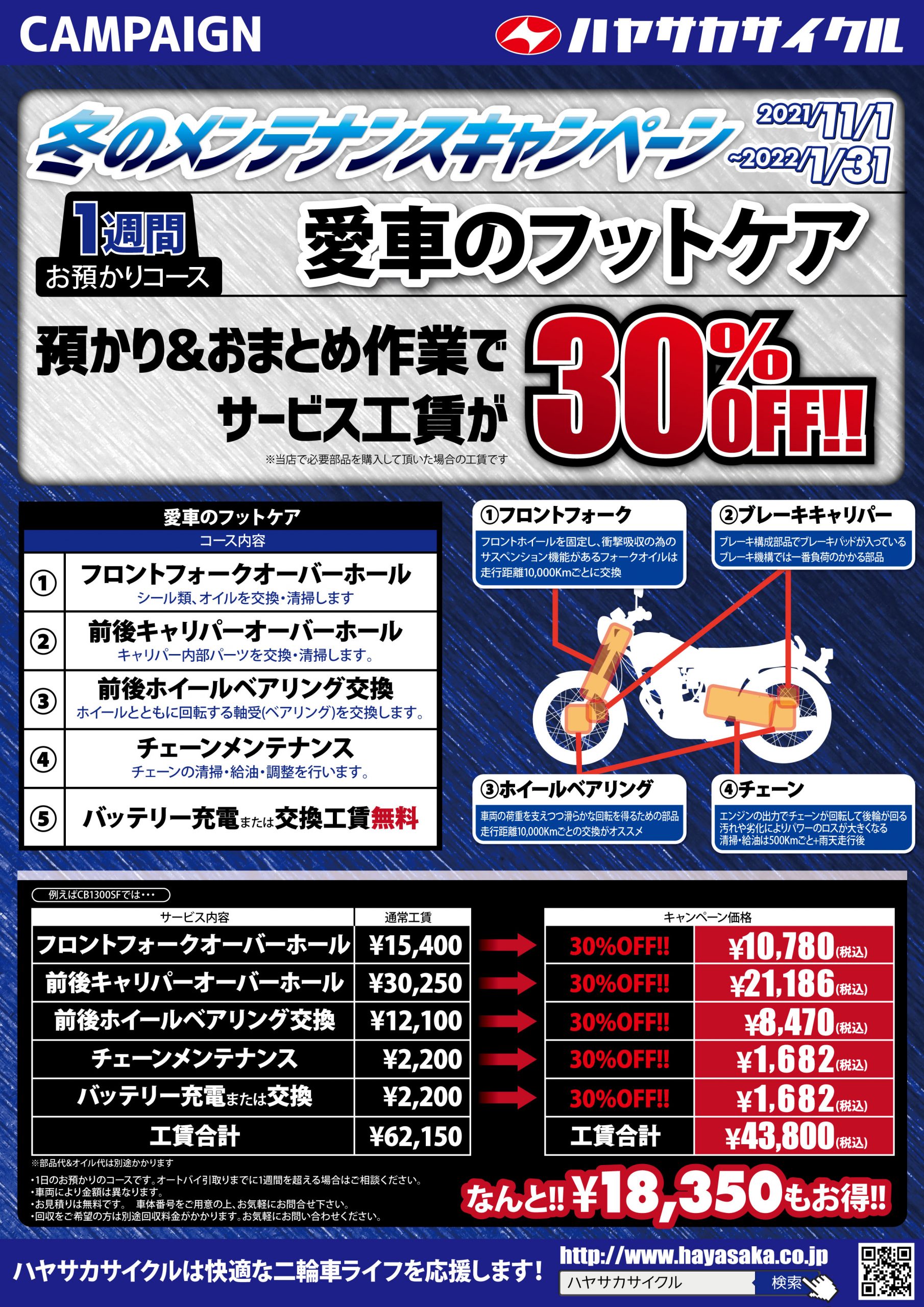 バイクを安心・安全、そしてさらに愉しむためにハヤサカサイクルが特別なプランをご提案致します。
