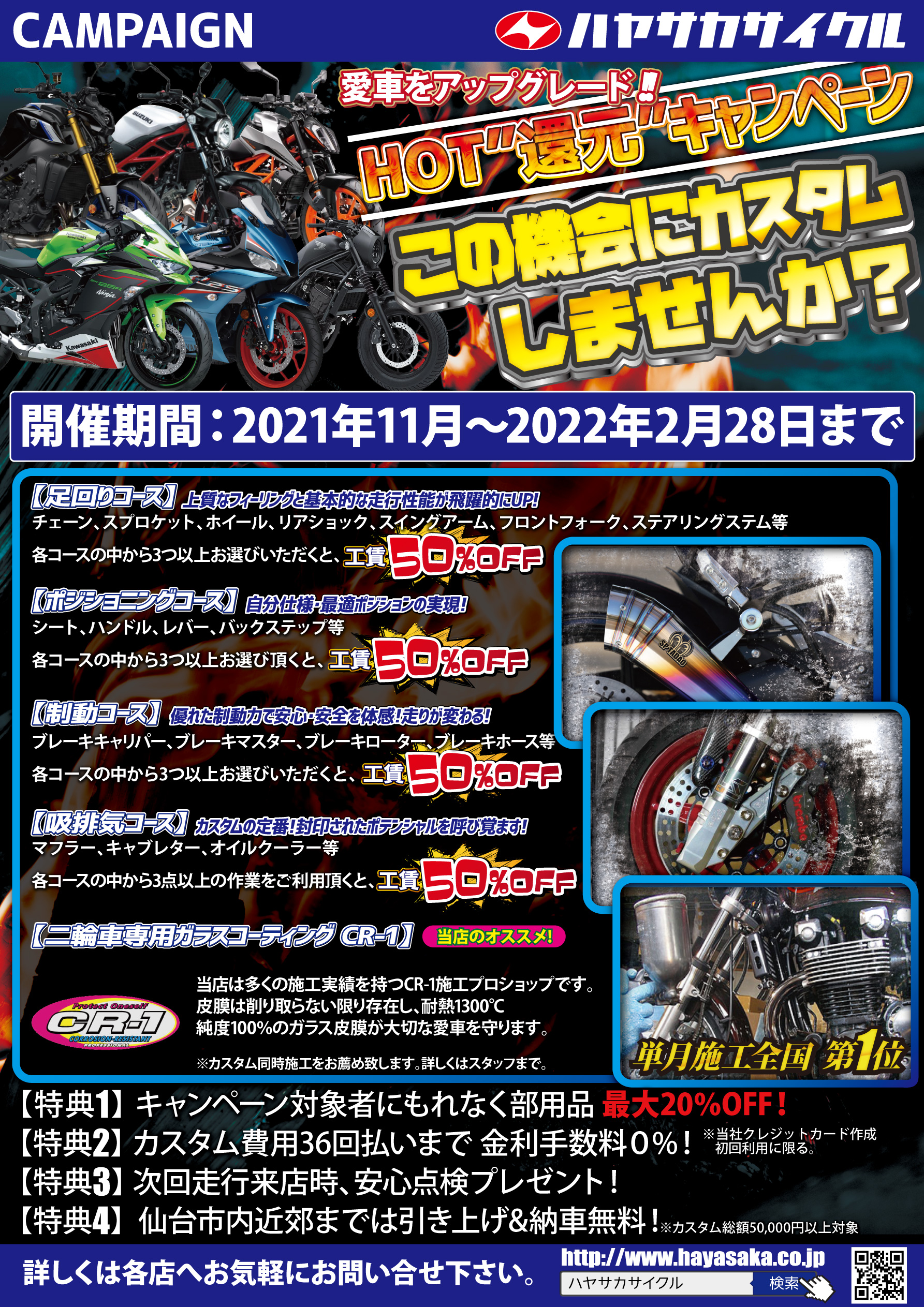 冬季保管やメンテナンス/カスタムキャンペーンも同時併用可能です。