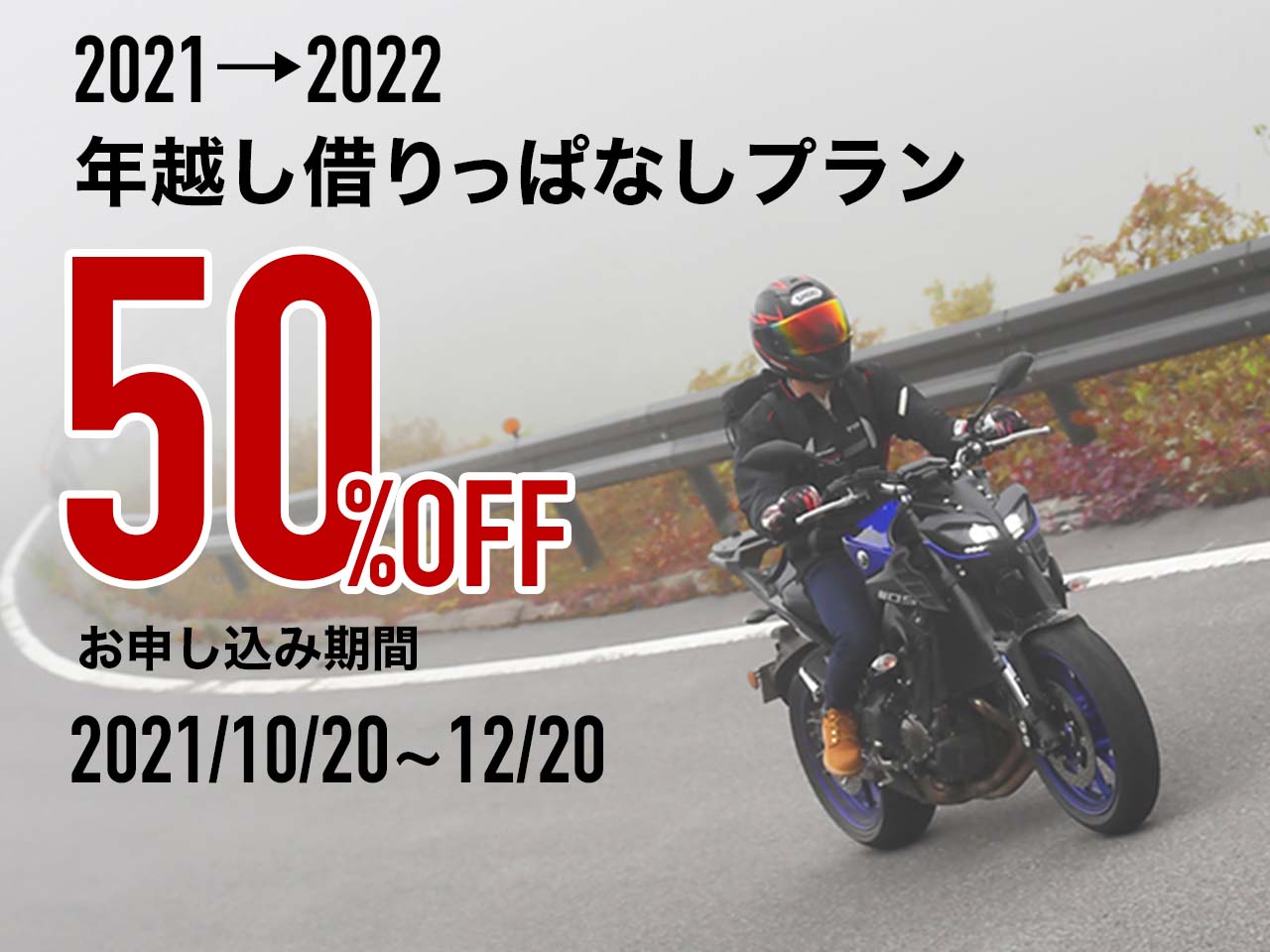 年越しを跨ぐ4日以上のお貸出しで50%OFF!