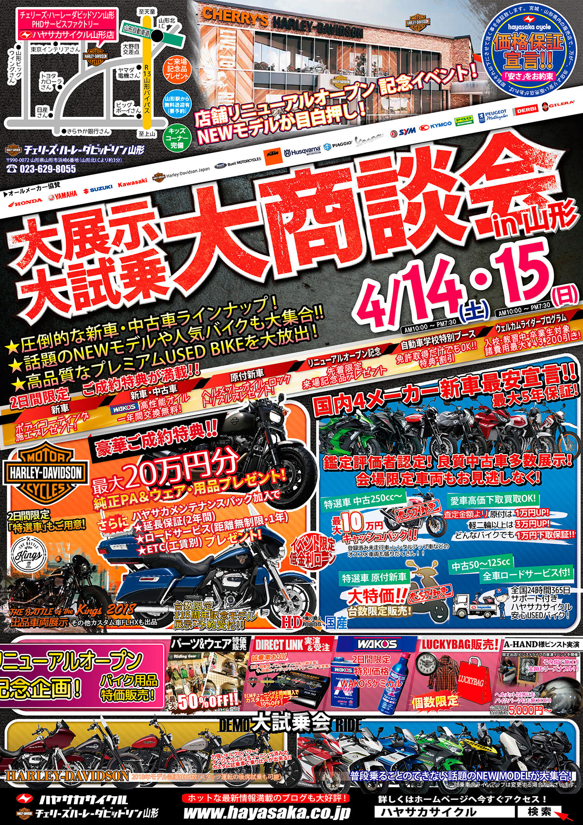 2日間限定のご成約特典も満載!ハーレー、国内4メーカーの会場限定車両もご用意!